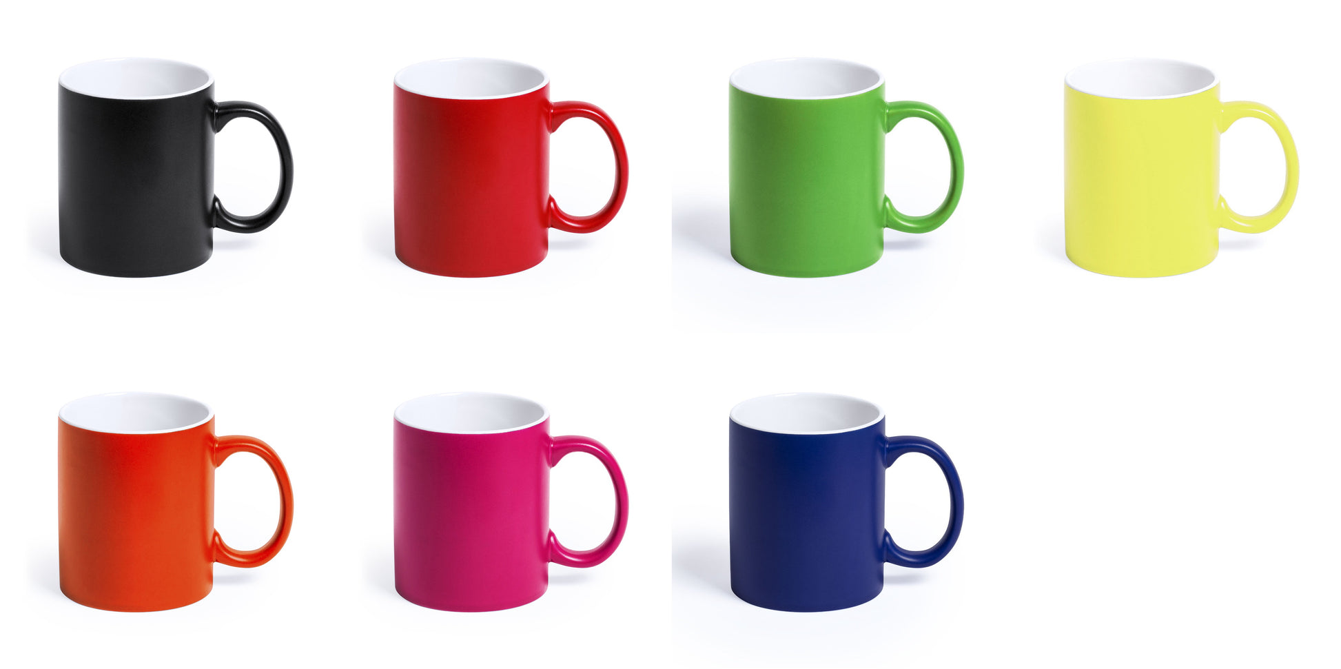 Keramische mok van 350 ml. Buitenzijde in diverse kleuren. speciaal ontworpen voor lasergraveren. Bij het graveren van het logo aan de buitenkant, wordt de kleur van de binnenkant van de mok getoond. Gepresenteerd in een individuele doos.